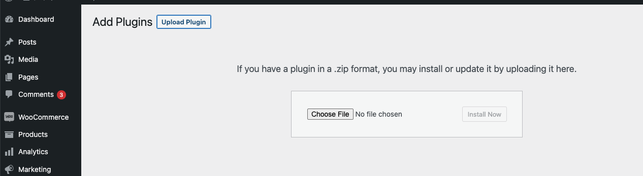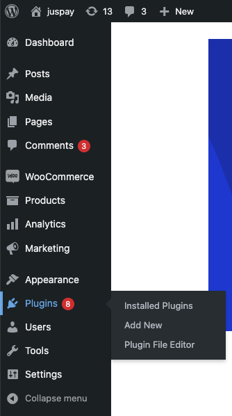 - WooCommerce plugin must be installed and enabled on your WordPress website. Visit here or go to your WordPress Admin dashboard and navigate to "Plugins" section to install and enable the WooCommerce Plugin.